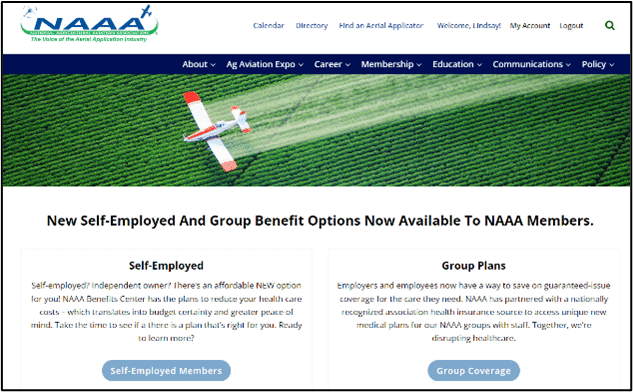 Now is the time to consider your health benefits renewal! Take control of your healthcare expenses today and learn more at NAAA Benefits Center. You may also access the NAAA Health Care plan from the membership tab at AgAviation.org and then click Health Insurance Benefits.